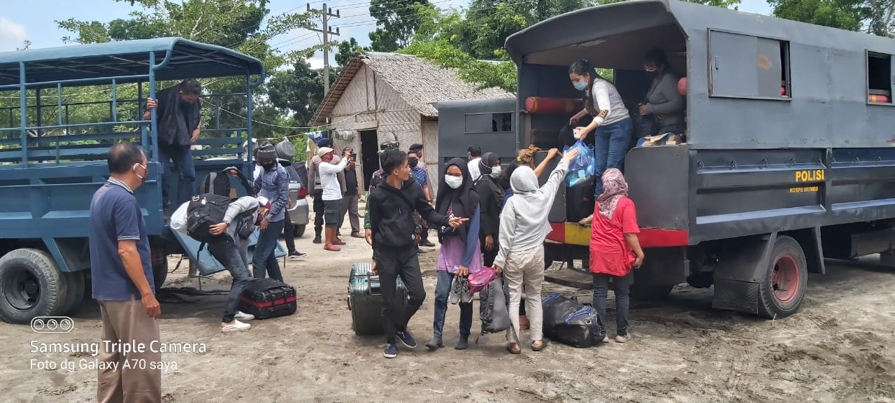Selanjutnya 124 Orang TKI Ilegal yang terdiri dari 97 orang Laki-laki, 25 orang Perempuan, dan 2 orang balita tersebut diserahkan ke Posko Induk Gugus Tugas Percepatan Penanganan Covid-19, dengan menggunakan MobilnTruk 4 Randis (2 unit truk milik Lanal TBA dan 2 unit truk milik Den Brimob) dan dikawal oleh Patroli Pomal TBA untuk di Karantina Sementara, diperiksa kesehatan nya, dan didata serta diperiksa barang bawaannya.