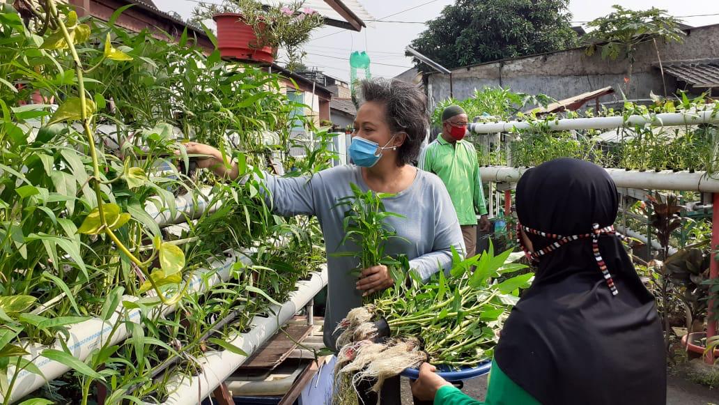 Putri dan kelompoknya mengenalkan urban farming kepada masyarakat kampung Pesanggarahan, Jakarta Selatan. Urban farming merupakan bercocok tanam di lingkungan rumah perkotaan dengan lahan terbatas.
