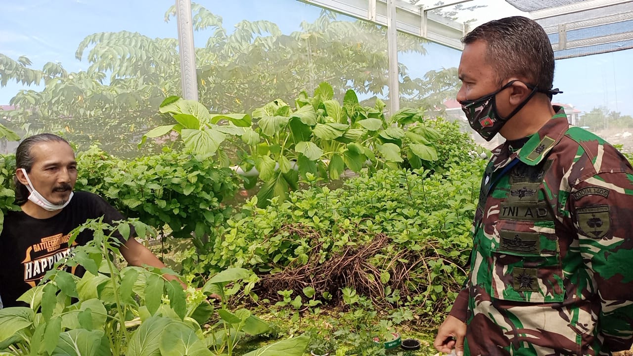BARRU, DELIK.ID — Komandan Kodim 1405/Mlts, Letkol Kav. Ali Syahputra Siregar SH. MH, meninjau Budidaya Tanaman Hidroponik dalam rangka Program Ketahanan Pangan Dampak Covid-19, Budidaya Tanaman hidroponik ini milik bapak Rudi di Cafe Happines, Jln Haji Lanakka.Kec. Baru, Kab. Barru. Kamis (4/6/2020).