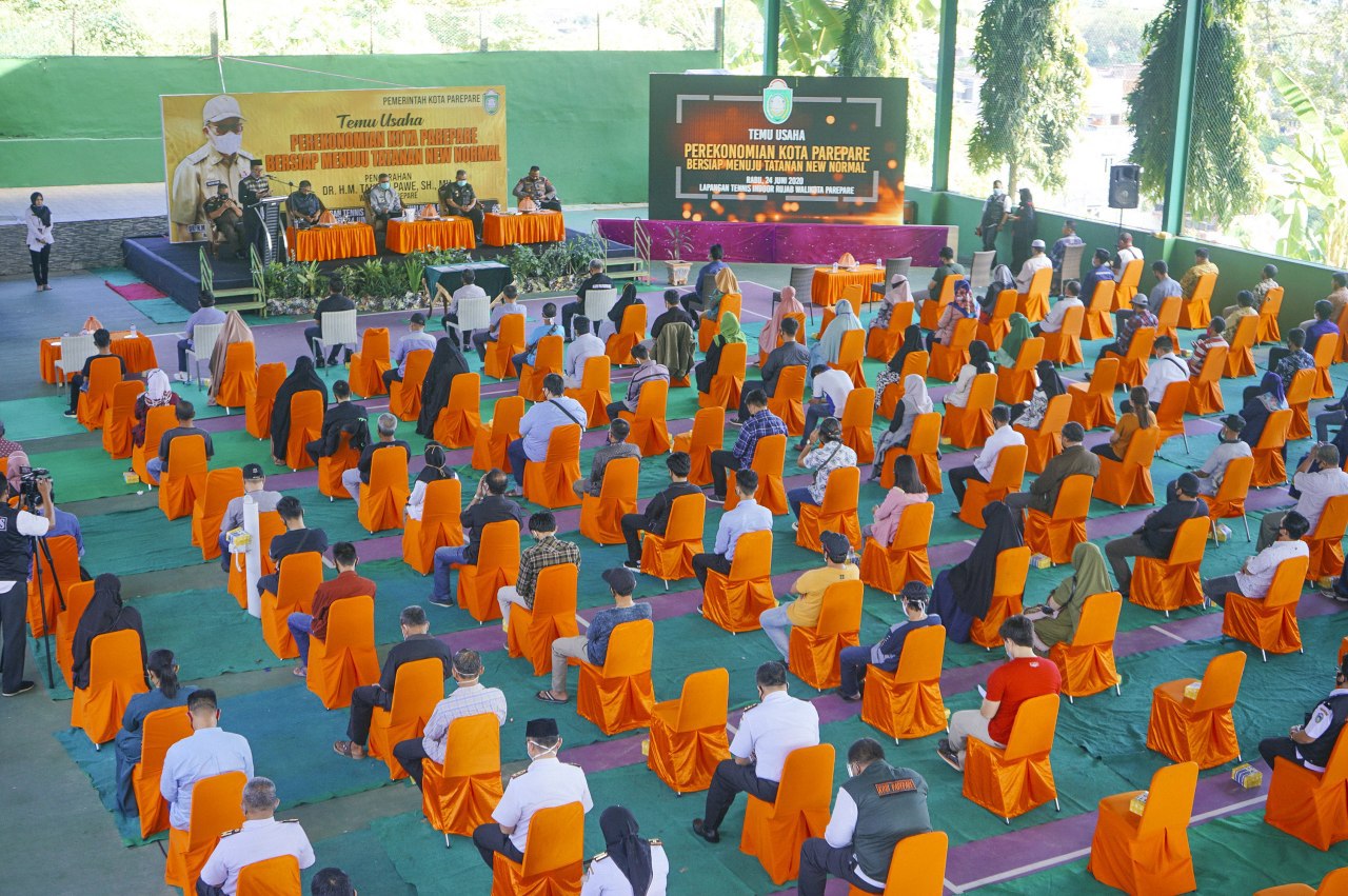 PAREPARE, DELIK.ID – Pemerintah Kota Parepare, menggelar kegiatan, Temu Usaha Perekonomian Kota Parepare Bersiap Menuju Tatanan New Normal, Rabu (24/6/2020) di lapangan tennis indoor rujab Wali Kota Parepare