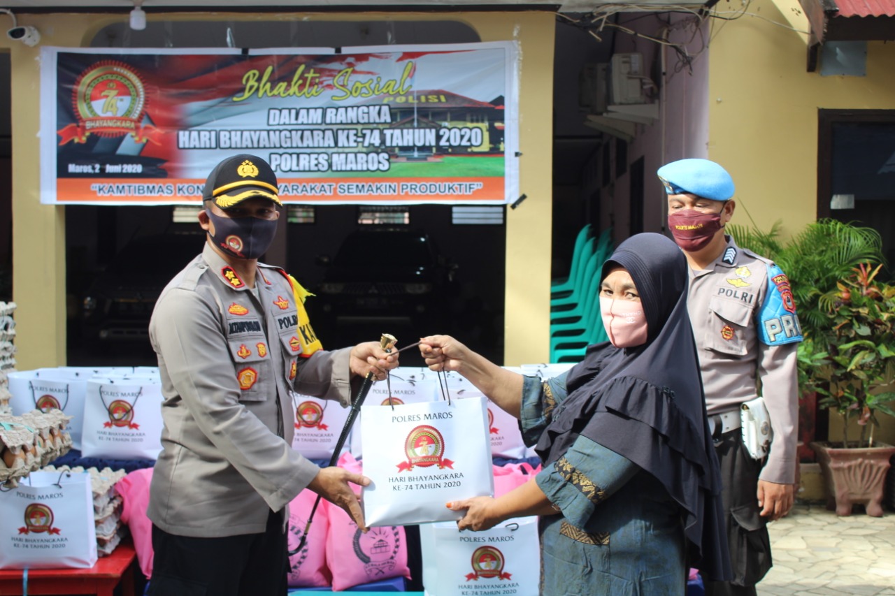 MAROS, DELIK.ID – Jelang peringatan Hari Ulang Tahun Bhayangkara ke-74, Polres Maros menggelar kegiatan bakti sosial dengan membagikan paket sembako kepada Masyarakat Pra Sejahtera di Kab Maros.