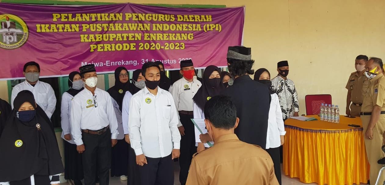 ENREKANG — Bupati Enrekang Drs H Muslimin Bando, M.Pd, menghadiri pelantikan Pengurus Daerah Ikatan Pustakawan Indonesia (IPI) Kabupaten Enrekang periode 2020-2023. Acara itu digelar di kompleks Kawasan Industri Maiwa (KIWA), Senin 31 Agustus 2020.