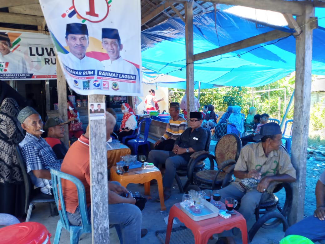 LUWU UTARA, DELIK.ID – Tim Pemenangan pasangan Muh Thahar Rum-Rahmat Laguni (MTR-RL) nomor urut 1 Takri (Koordinator Wilayah Malangke-Malangke Barat bersama Korcam Yamsir didampingi Ketua Tim Maharani Sari Bulan memenuhi undangan hajatan keluarga di Desa Pombakka, Kecamatan Malangke Barat (Malbar), Kabupaten Luwu Utara, Sulsel. Sabtu (21/11/2020).