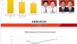“survey Indikator dilakukan selama masa kampanye dari tanggal 18-22 November 2020, hasilnya Khenoki-Era Era semakin meninggalkan lawannya dengan memperoleh 51,6 persen, sementara Eliyunus-Mareko (Elmar) hanya 25,5 persen, dan yang belum menentukan pilihannya 22,9 persen.” Ungkap Adak Kamil, Minggu (29/11/2020).