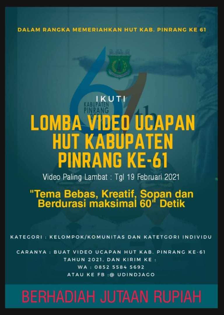 “Lomba kreatif ucapan HUT Kabupaten Pinrang melalui media sosial, sengaja di buat oleh Bupati Pinrang Irwan Hamid agar seluruh lapisan masyarakat bisa terlibat secara langsung dalam perayaan hari yang begitu bersejarah bagi warga Kabupaten Pinrang. (16/02/2021).