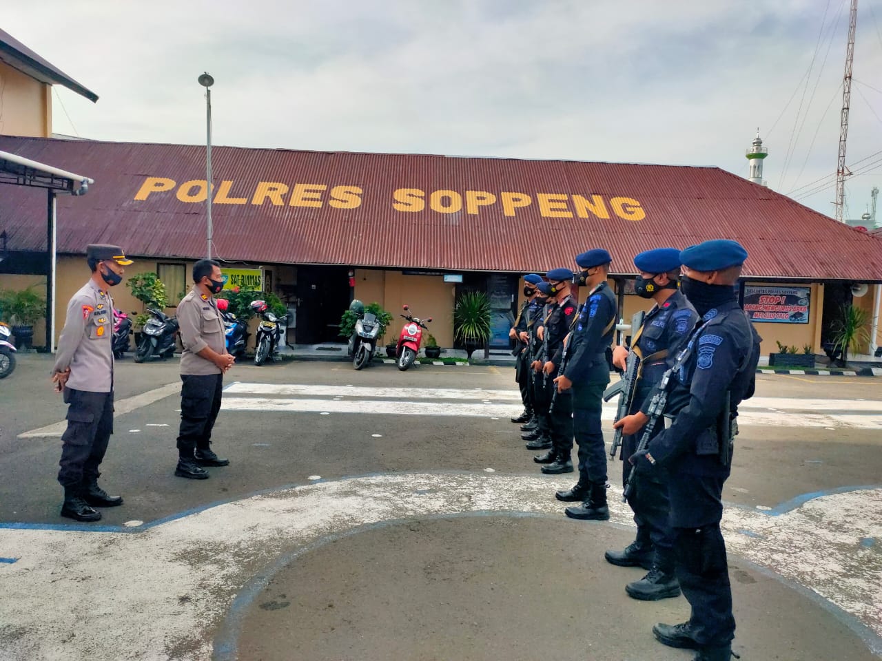 Bupati da Wakil Bupati terpilih resmi dilantik oleh Gubernur, Sulawesi Selatan, Nurdin Abdullah. 1 regu personel Batalyon C Pelopor Satbrimob Polda Sulsel bersenjata lengkap turut mengamankan jalannya acara pelantikan yang berlangsung dengan tetap menerapkan protokol kesehatan pencegahan Covid 19.