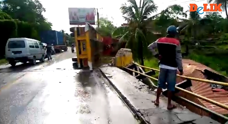 ” Kontainer melaji dengan kecepatan tinggi dari pendakian, kemungkinan remnya blonk. Sesaat kemudian sang supir tidak bisa mengendalikan truknya kemudian menabrak jembatan, ” Kata Arif, Supir yang melintas melihat kejadian itu, kamis (06/05/2021).
