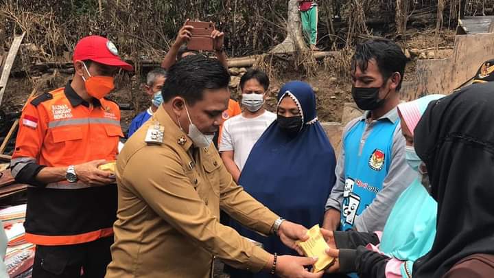 Wabup Asman datang langsung dan menyerahkan bantuan berupa barang dan uang tunai. Wabup didampingi oleh jajaran Dinas Sosial, BPBD, Baznas dan Camat Buntu Batu.