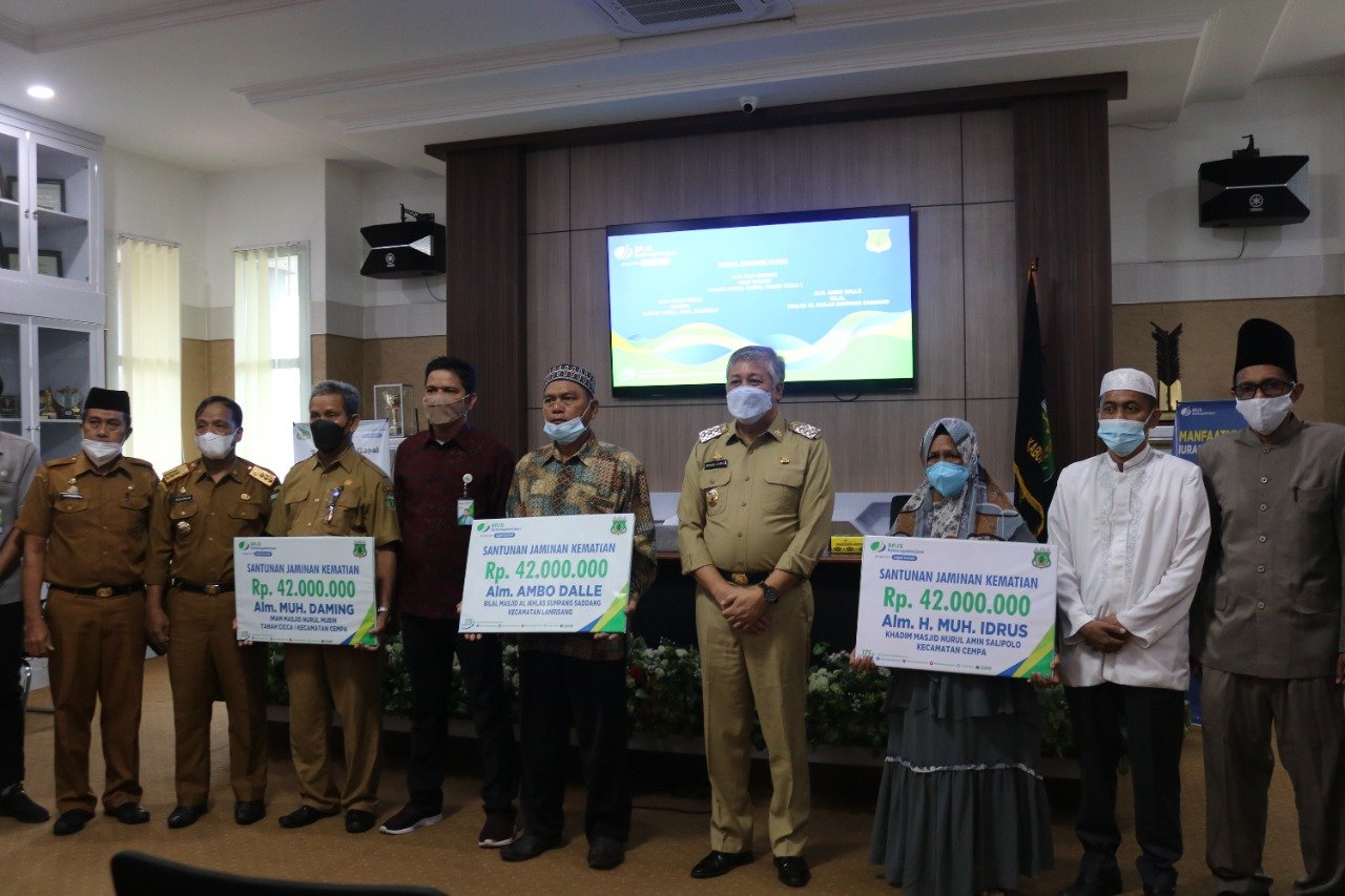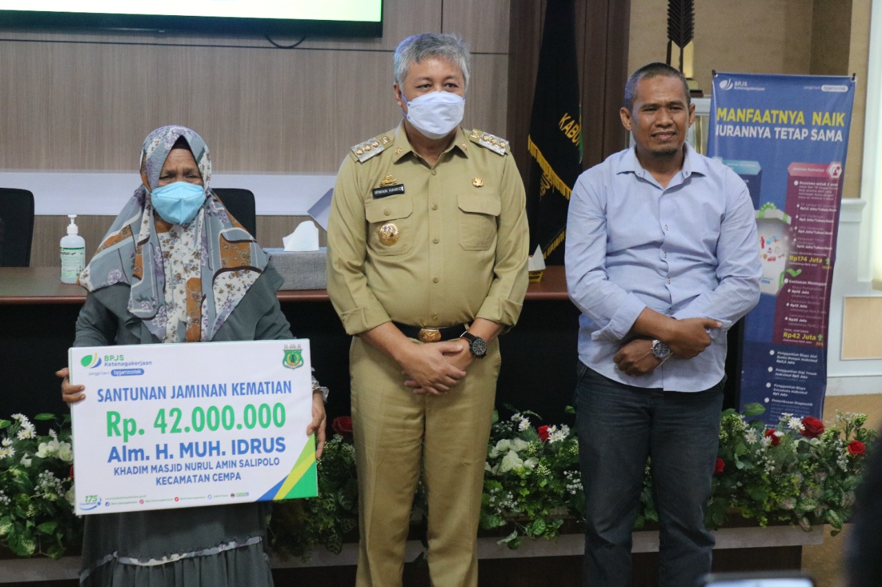 Hal ini disampaikan Bupati Pinrang Irwan Hamid saat menyerahkan secara langsung santunan kematian dari BPJS Ketenagakerjaan, Senin (15/6/2021).