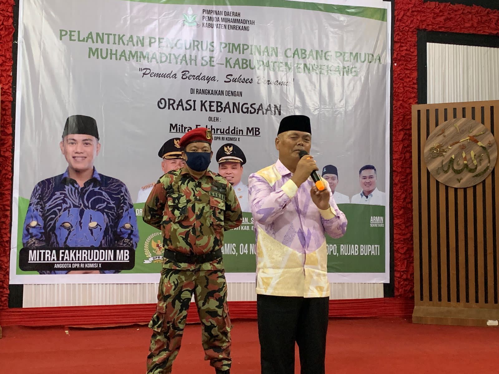 ENREKANG, DELIK, ID — Pimpinan Daerah Pemuda Muhammadiyah (PDPM) Kabupaten Enrekang lantik 60 pengurus dari 20 Pimpinan Cabang Pemuda Muhammadiyah Se-Kabupaten Enrekang di Aula Pendopo Rujab Bupati Enrekang, Kamis malam (4/11/2021).