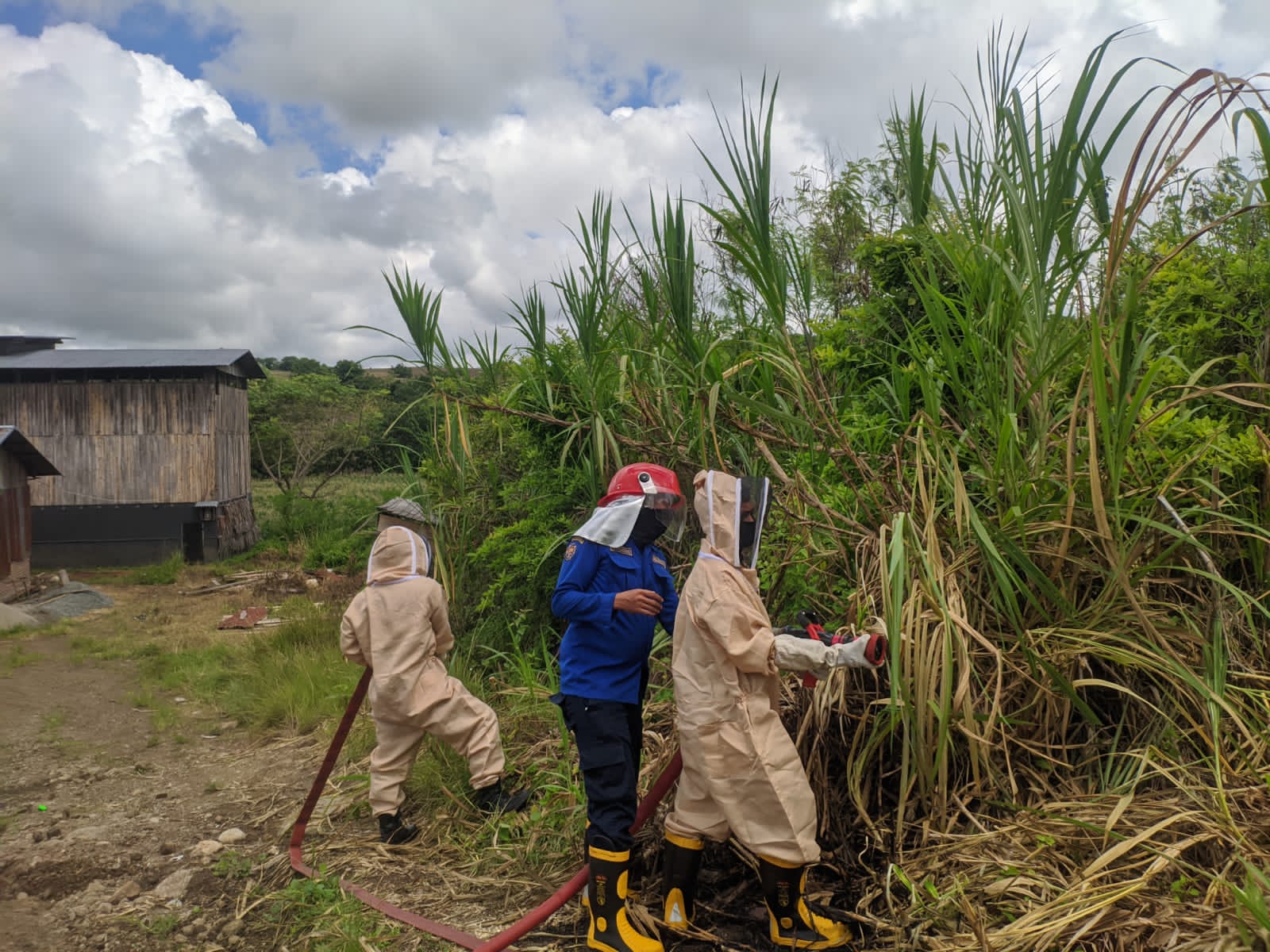 Tim Damkar kota Parepare menerjunkan kendaraan pemadam kebakaran, lengkap dengan pakaian anti tawon.