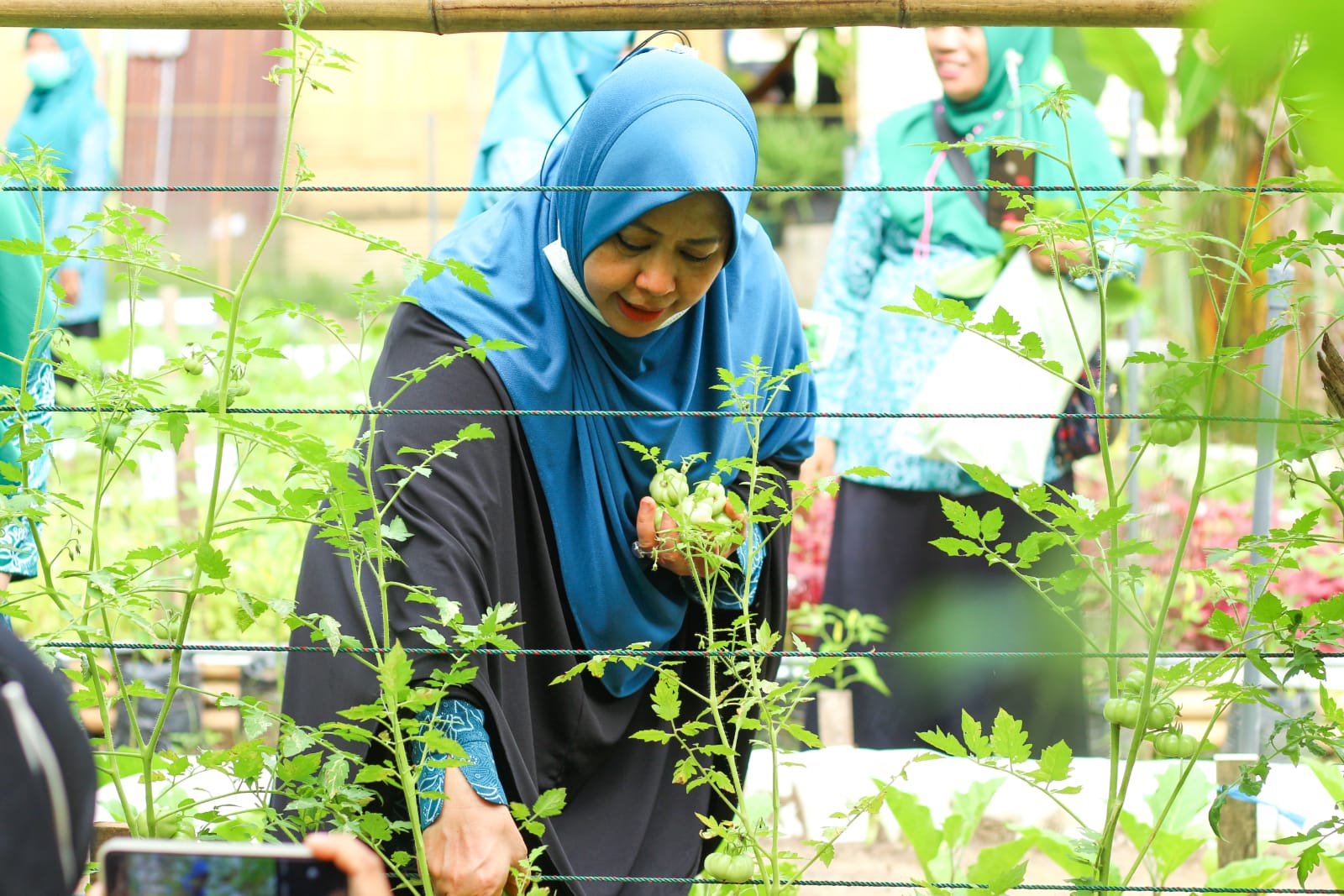 PAREPARE DELIK.ID-Ketua Tim Penggerak PKK Parepare, Erna Rasyid Taufan memuji inovasi kader PKK yang memanfaatkan lahan non produktif menjadi produktif dengan diolah menjadi kebun.