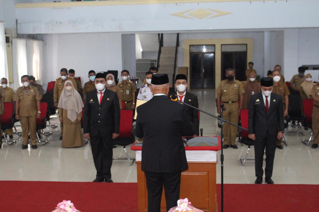 Hadir Ketua DPRD Idris Sadik Enrekang beserta Sekda Enrekang H. Baba yang juga turut menjadi saksi dalam penandatanganan berita acara sumpah jabatan dan Perwakilan Dandim 1419 Enrekang serta Polres Enrekang