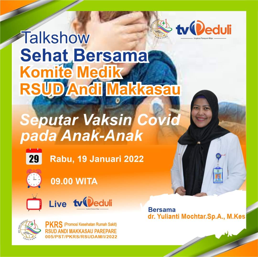 Hal itu, dikemas dalam bentuk talkshow Sehat Bersama Komite Medik RSUD Andi Makkasau dengan tema Seputar Vaksin pada Anak-anak.