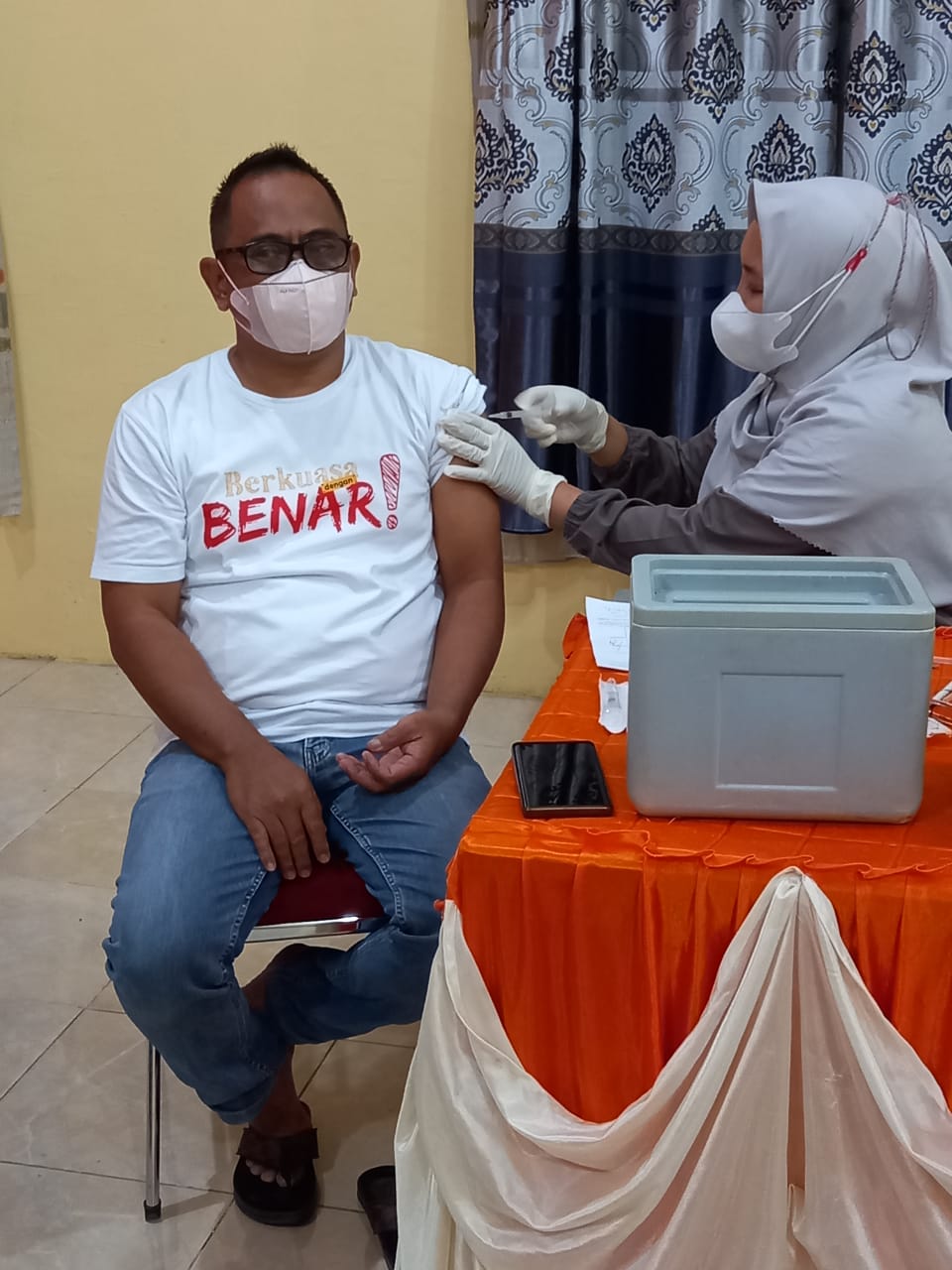 PAREPARE DELIK.ID-Komisi Pemilihan Umum Daerah Kota Parepare menggelar vaksinasi ketiga di Ruang Media Center KPU Parepare, Jalan Bumi Harapan, Selasa 15 Februari 2022.