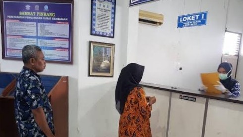 Tampak, Kantor Sistem Administrasi Manunggal Satu Atap (Samsat) Pinrang, sudah berjalan penerapan konsep Polri Presisi yang menjadi Konsep ini merupakan cita-cita besar Kapolri Jenderal Pol Listyo Sigit Prabowo.