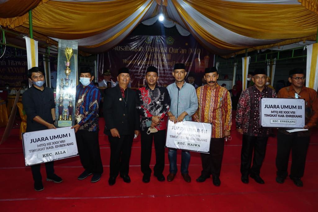 Turut hadir Bupati Enrekang Muslimin Bando, didampingi Kepala Kantor Kemenag Enrekang Irman S.Ag M.Si beserta jajaran menutup langsung kegiatan Musabaqah Tilawatil Qur’an (MTQ) XXXVIII Tingkat Kabupaten Enrekang di Lapangan Sepak Bola Baraka (Jumat, 03/03/2022)
