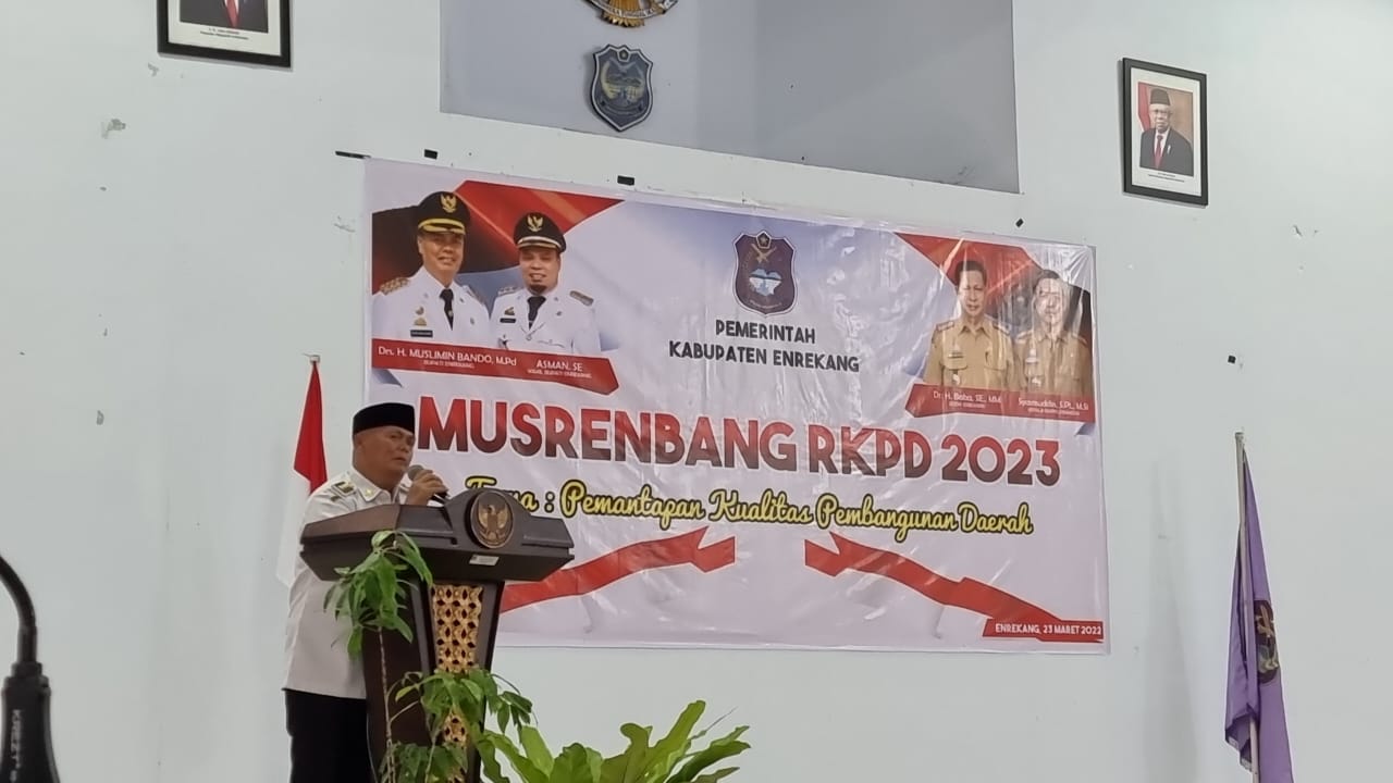 Hal ini disampaikan Bupati, kepada Gubernur Sulsel yang diwakili Kepala Badan Kesbangpol Dr. H. Asriady Sulaiman, disela acara Musrenbang RKPD Tingkat Kabupaten tahun 2023 di Enrekang, Rabu 23 Maret 2022.