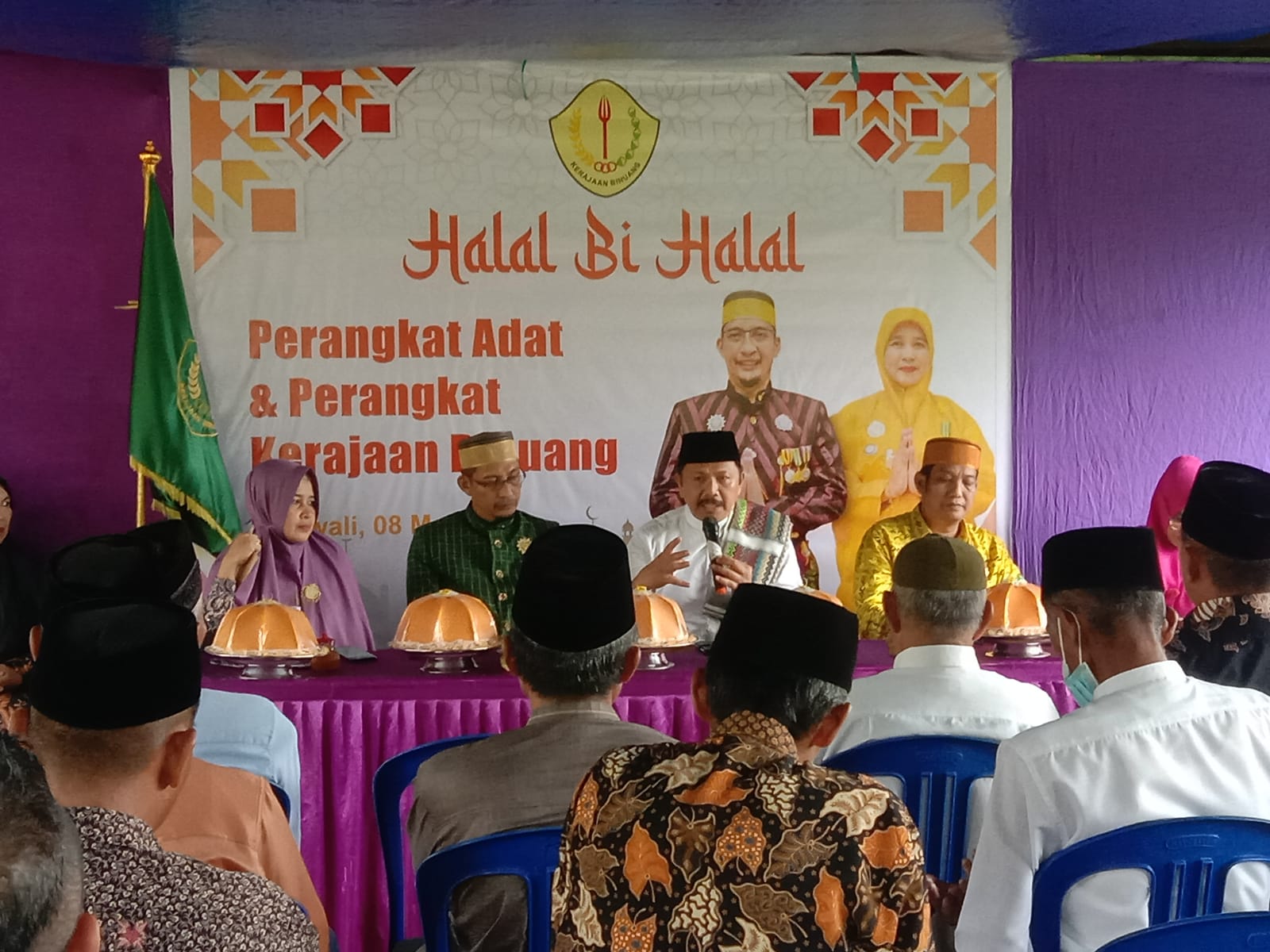 “Moment Halal bi Halal ini selain untuk mempererat tali silaturrahim juga untuk menyatukan visi misi perangkat adat untuk menyusun program kerja yang berkenaan dengan masyarakat adat Kerajaan Binuang kedepannya,” terang Raja ke XVIII Binuang Andi Irfan Mappaewang.