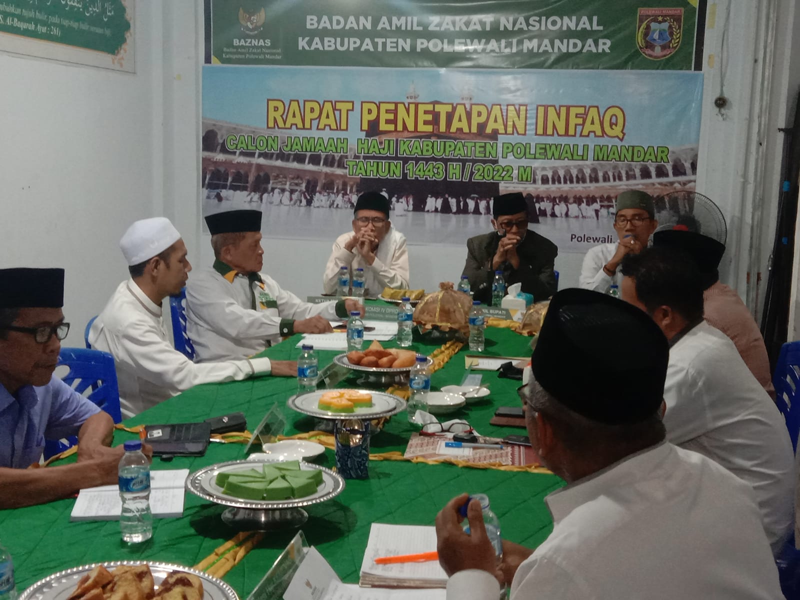 Penetapan ketentuan besaran Infaq CJH tahun 2022 ini berdasarkan hasil rapat bersama Badan Amil Zakat Nasional (Baznas) dan Kantor Kementerian Agama Kabupaten Polman yang dipimpin oleh Wakil Ketua Bupati Polman H. M Natsir Rahmat, didampingi Kepala Kantor Kemenag Imran K Kesa, dan Ketua MUI Polman H. Ustads Syahid Rasyid, Kabag Kesra Polman Alimuddin serta Ketua Baznas Polman H. Nurrachman dan jajarannya.