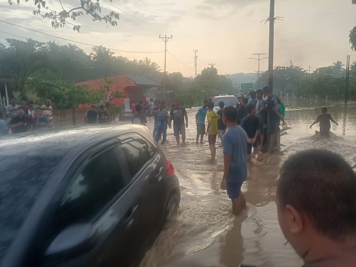 GORONTALO, delik id – Sebanyak 192 rumah warga Kabupaten Gorontalo, Provinsi Gorontalo terendam banjir pada Kamis (19/5) pukul 14.40 waktu setempat. Banjir terjadi setelah hujan dengan intensitas tinggi yang menyebabkan genangan air di saluran pembuangan penuh sehingga memasuki pemukiman warga.