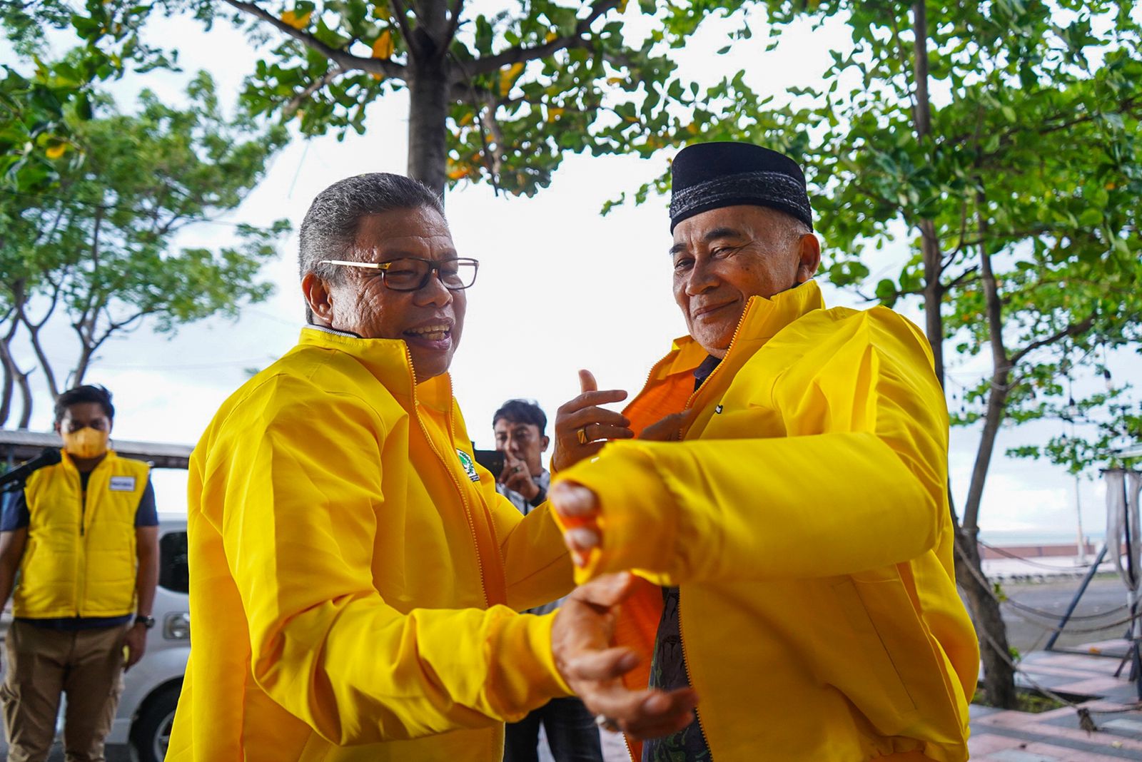 Dalam kesempatan itu, TP juga mengenakan jaket Golkar kepada mantan sekda Bantaeng, Abdul Gani sebagai tanda dirinya bergabung ke Partai Golkar.
