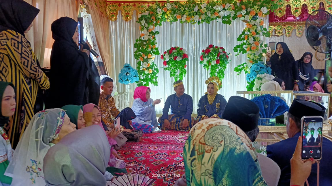 PAREPARE, delik id – Ketua Tim Penggerak (TP) PKK Kota Parepare, Hj Erna Rasyid Taufan menghadiri akad nikah Karmila, mantan asisten pribadi (aspri) di Jalan Arung Mampi, Kelurahan Lumpue, Kecamatan Bacukiki Barat, Kota Parepare, Minggu, (17/7/2022).