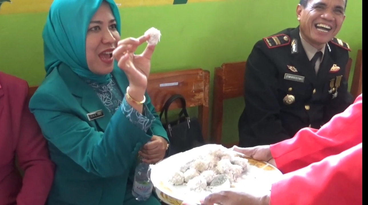 Sajikan makanan tradisional nusantara yang digelar di komoleks SD Negeri 46, Kecamatan Duampanua, Kabupaten Pinrang, Sulawesi Selatan itupun diserbu peserta upacara termasuk warga ikut menyaksikan peringatan Proklamasi itu.