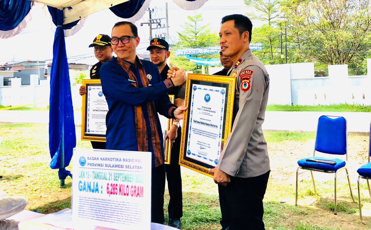 Penghargaan itu, diserahkan langsung Kepala Badan Narkotika Nasional Provinsi (BNNP) Sulawesi Selatan, Brigjen Pol Ghiri Prawijaya di Kantor BNN Provinsi Sulsel, Kamis, 29 September 2022.