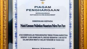 PAREPARE, delik id — Karena telah berhasil menggagalkan peredaran narkotika 11 kg,