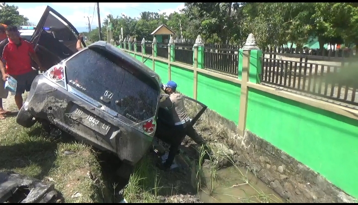 ” Kedua guru berboncengan meninggal dunia sementara guru mengendarai mobil mengalami luka robek pada alis kanan, luka robek pada jari tenga tangan kiri l, nyeri pada dada dan Dirawat di Puskesma Lampa dan dirujuk ke RS. Madising Bungi, ” Terang Nawir.