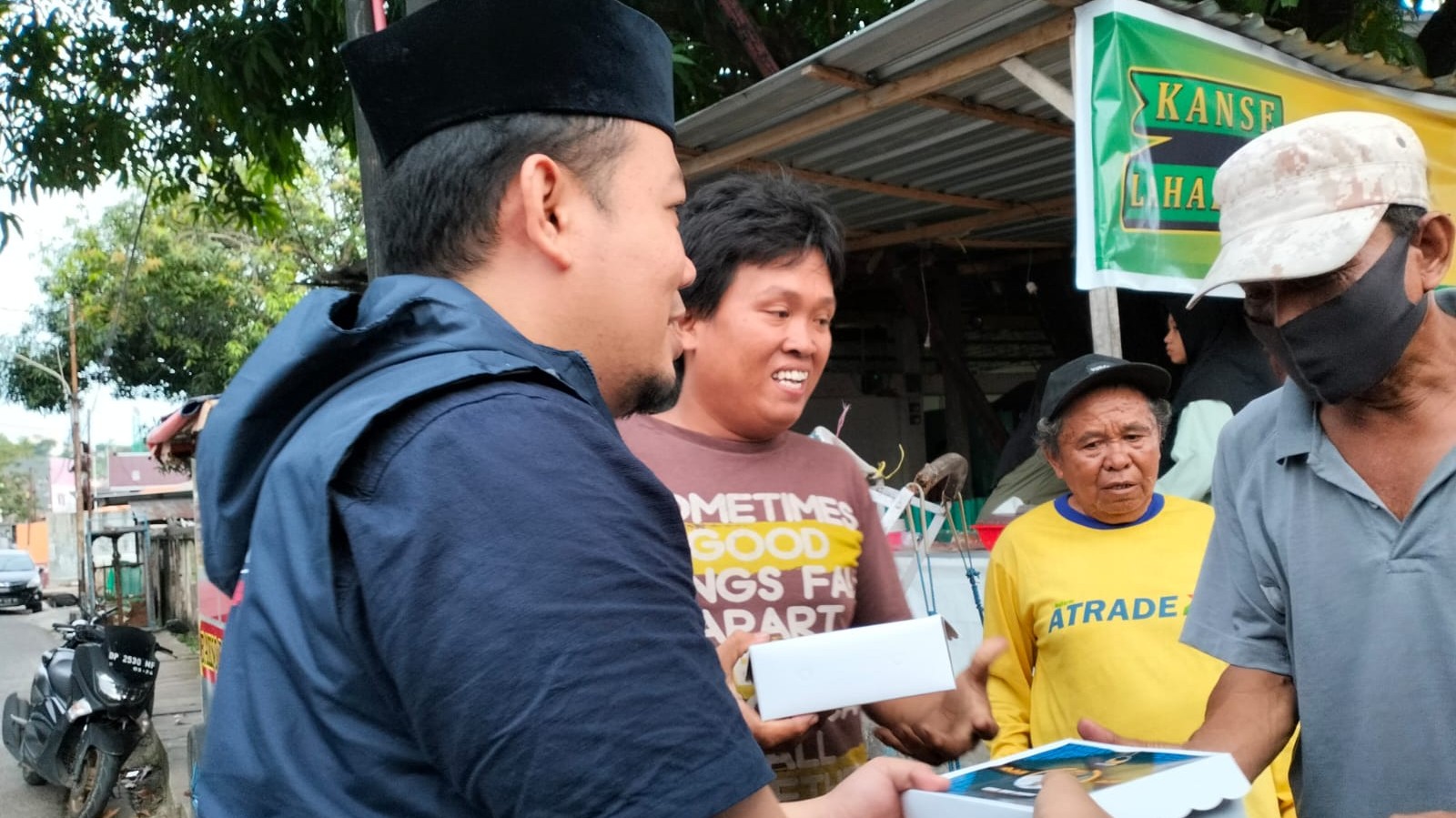Pria yang akrab disapa Ahad itu berkeliling dan turun ke jalan untuk membagikan paket buka puasa kepada masyarakat yang ditemui, Jumat (14/4/2023).