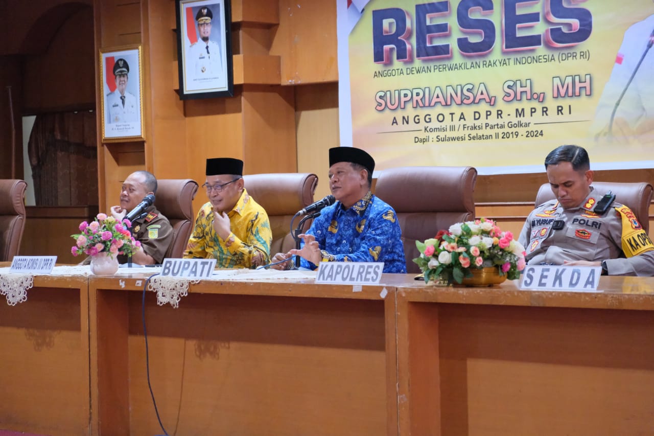 SOPPENG, DELIK.ID – Reses Supriansa, SH, MH, Anggota Komisi III DPR RI Dapil Sulsel II periode 2019-2024, digelar di Ruang Pola Kantor Bupati Soppeng. Senin, 17 April 2023