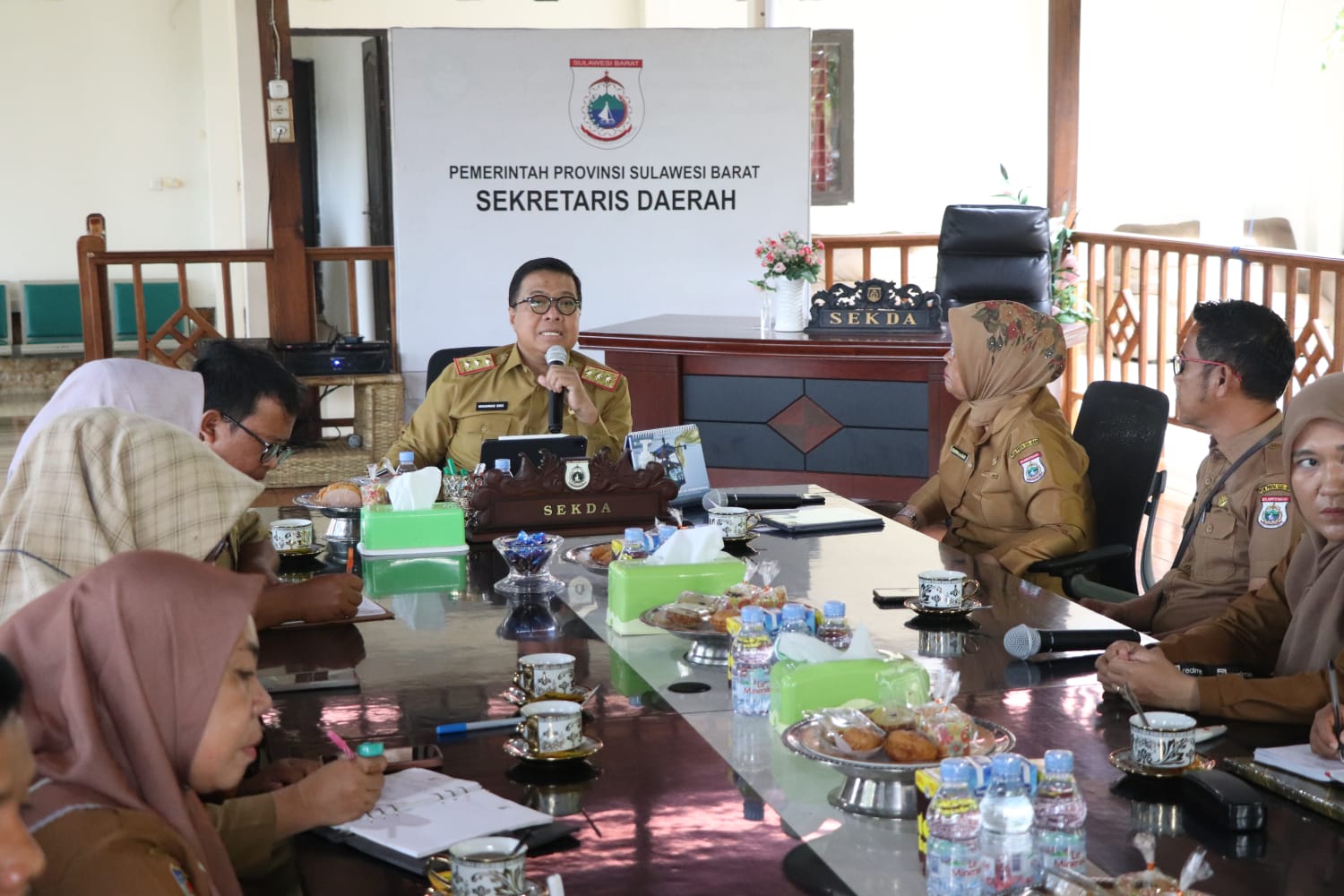 MAMUJU, DELIK. ID — Sekretaris Daerah Provinsi Sulbar Muhammad Idris bersama Kepala Dinas Pariwisata Sulbar Darmawati Ansar, beserta jajarannya menggelar rapat terkait Festival Gema Sulbar di Rujab Sekprov Sulbar, Selasa 16 Mei.