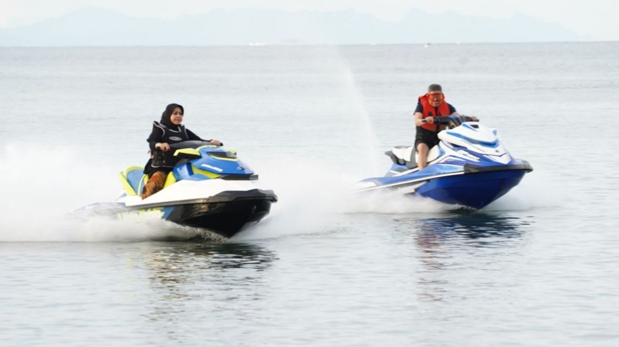 PAREPARE, DELIK.ID – Wali Kota Parepare, Taufan Pawe (TP) bersama Ketua TP PKK Erna Rasyid Taufan (ERAT) memanfaatkan hari libur nasional dengan memainkan Jet Ski di Pantai Lowita, Suppa Kabupaten Pinrang, Sulawesi Selatan, Jumat 30 Juni 2023.