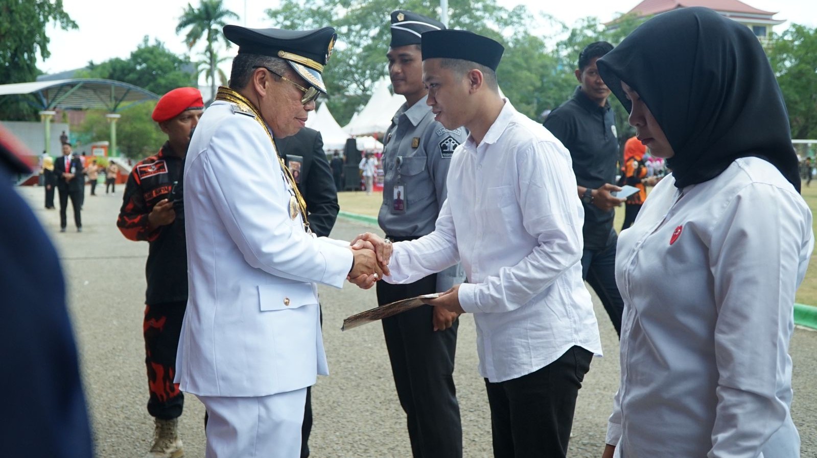 Penyerahan remisi langsung oleh Wali Kota Parepare Taufan Pawe usai Upacara peringatan detik-detik proklamasi kemerdekaan Republik Indonesia, di Alun-alun kota Lapangan Andi Makkasau, Kamis. (17/8/2023).