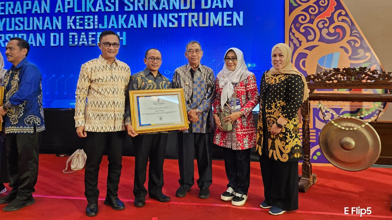 Deputi Bidang Pembinaan Kearsipan Arsip Nasional RI, DRA. Desi Pratiwi, MIM menyerahkan langsung penghargaan tersebut.