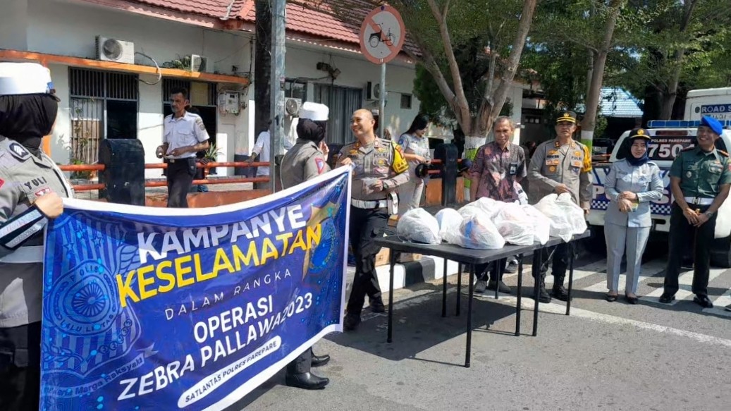 Kegiatan dalam rangka Operasi Zebra Pallawa Lipu 2023 itu dilaksanakan di Alun-alun kota kawasan Monumen Ainun Habibie. Rabu, (6/9/2023).
