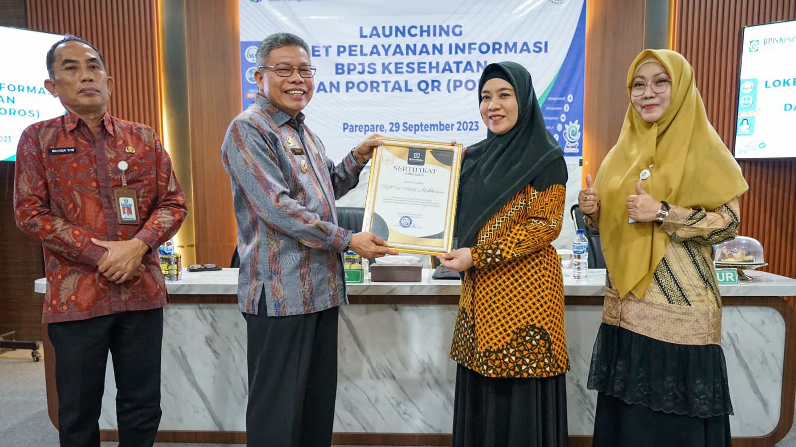 Penghargaan ini diserahkan langsung, Kepala Kantor BPJS Kesehatan Cabang Kota Parepare, Andi Rismaniswati Syaiful kepada Wali Kota Taufan Pawe, kemudian diserahkan ke Direktur RSUD Andi Makkasau Parepare dr Renny Anggraeni Sari, Jumat, lalu.