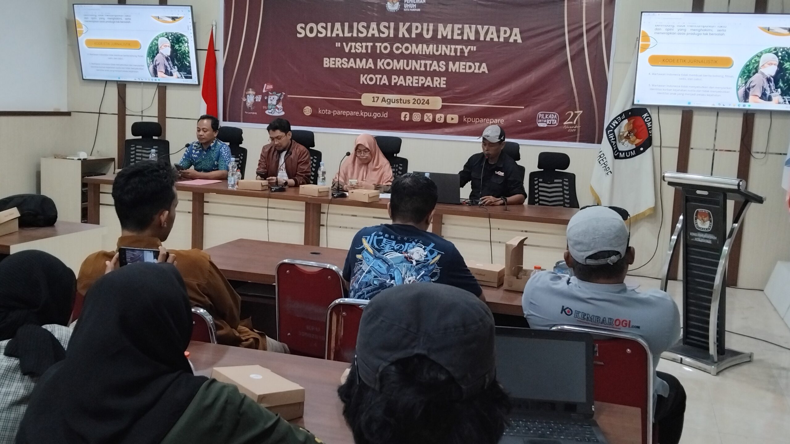 PAREPARE, DELIK.ID – KPU Parepare menggelar “Visit to Community” yang dikemas dalam Sosialisasi KPU Menyapa, bersama komunitas media Parepare di Media Centre KPU Parepare, Sabtu (17/8/2024).