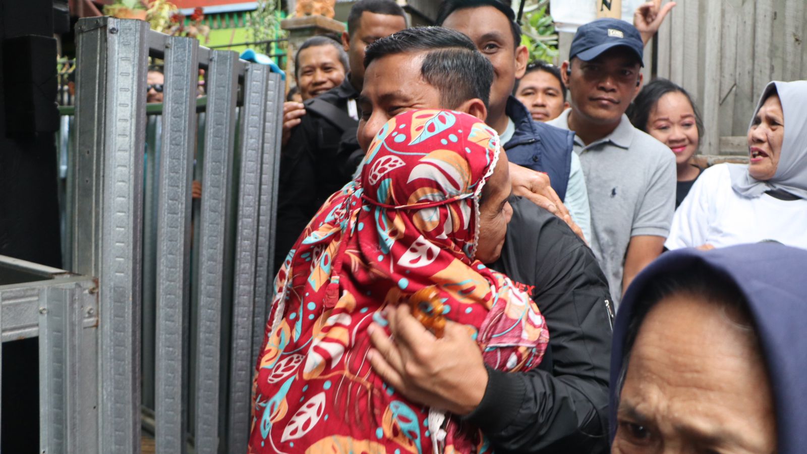 Dalam suasana yang penuh emosional, sebagian besar warga, terutama kaum ibu-ibu, menyambut Tasming Hamid dengan pelukan hangat.