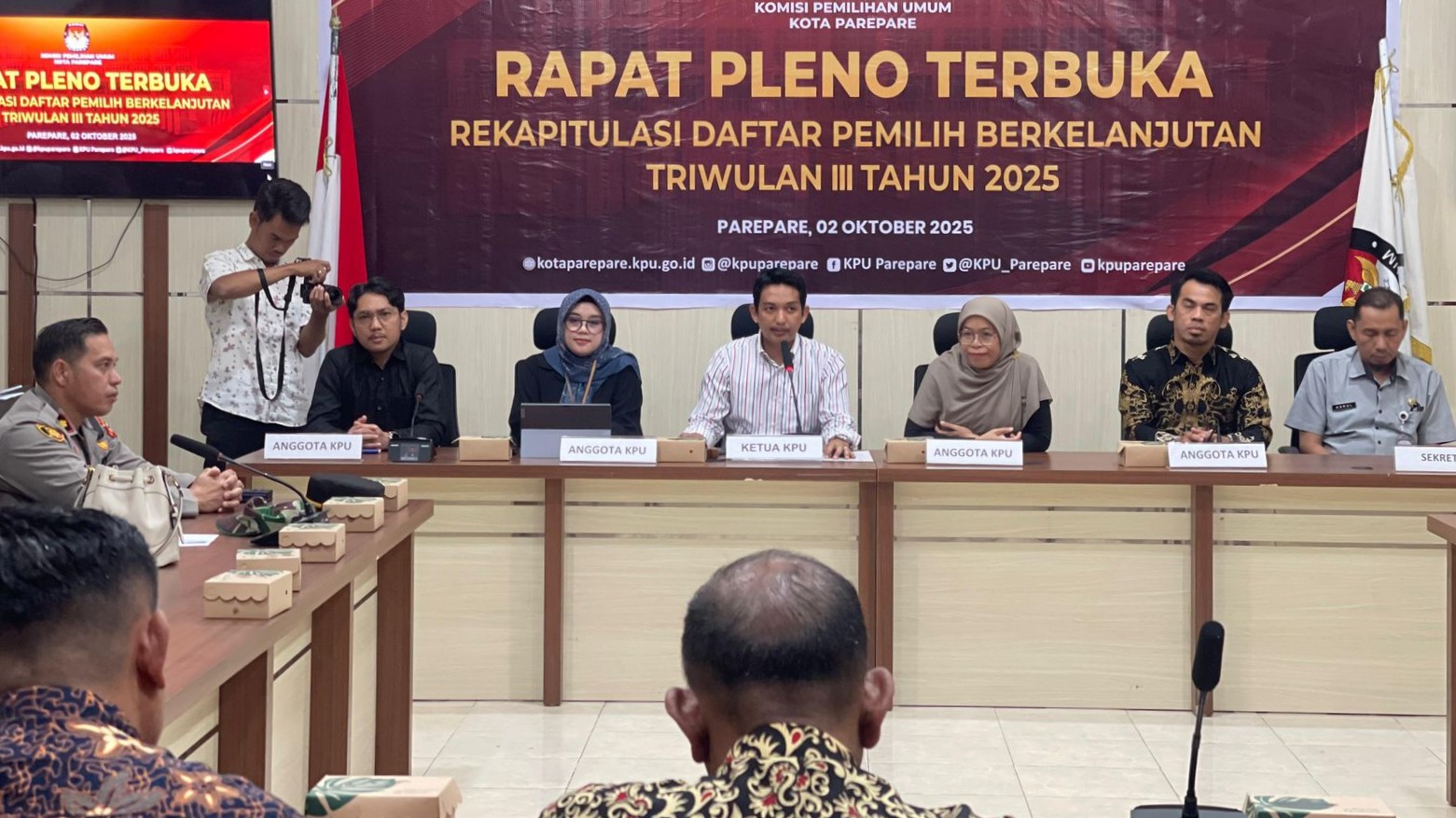 PAREPARE, DELIK.ID – Komisi Pemilihan Umum (KPU) Kota Parepare menggelar Rapat Pleno Terbuka Rekapitulasi Daftar Pemilih Berkelanjutan Triwulan III Tahun 2025, Kamis (2/10/2025), bertempat di Aula KPU Parepare.