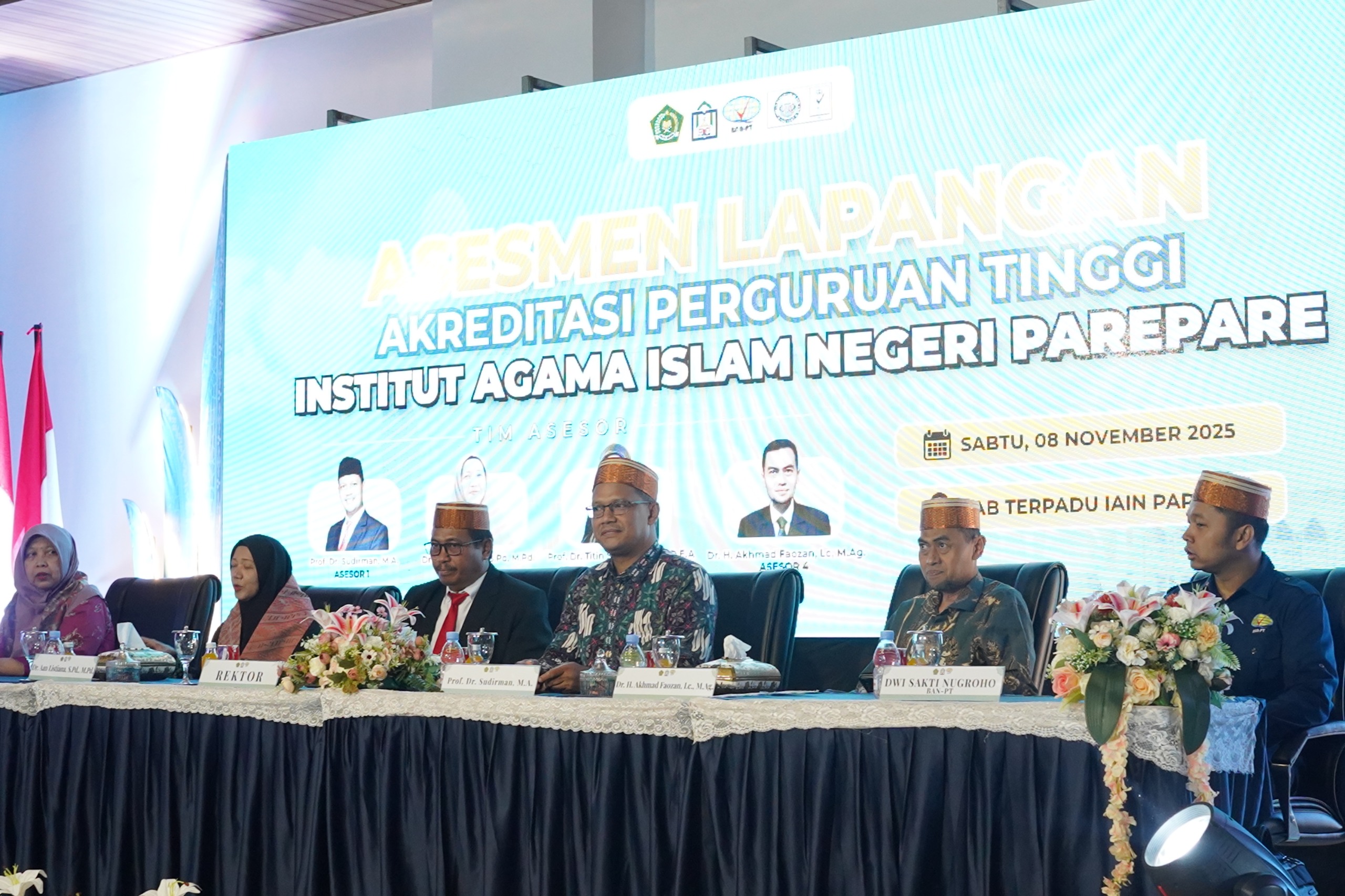 PAREPARE, DELIK.ID – Institut Agama Islam Negeri (IAIN) Parepare resmi menjalani Asesmen Lapangan (AL) Akreditasi Perguruan Tinggi oleh Tim Asesor dari Badan Akreditasi Nasional Perguruan Tinggi (BAN-PT) pada, Sabtu (8/11/2025). Proses asesmen yang menentukan ini diawali dengan seremoni penyambutan hangat di Gedung Laboratorium Terpadu IAIN Parepare, yang dihadiri oleh seluruh jajaran pimpinan dan civitas academica.