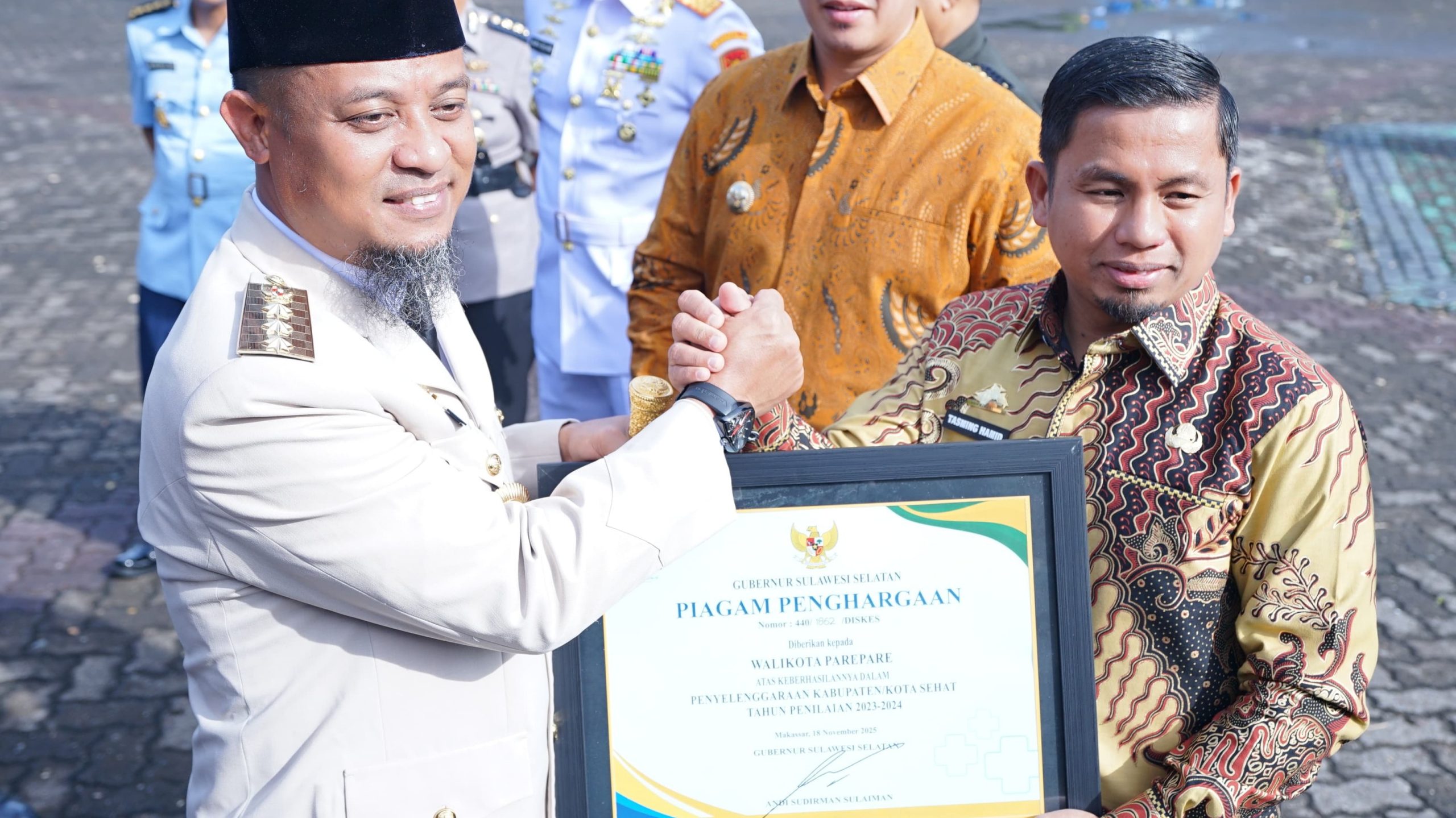 Kota Parepare meraih penghargaan dari Gubernur Sulawesi Selatan atas keberhasilan Wali Kota dalam mewujudkan Parepare sebagai kota sehat.