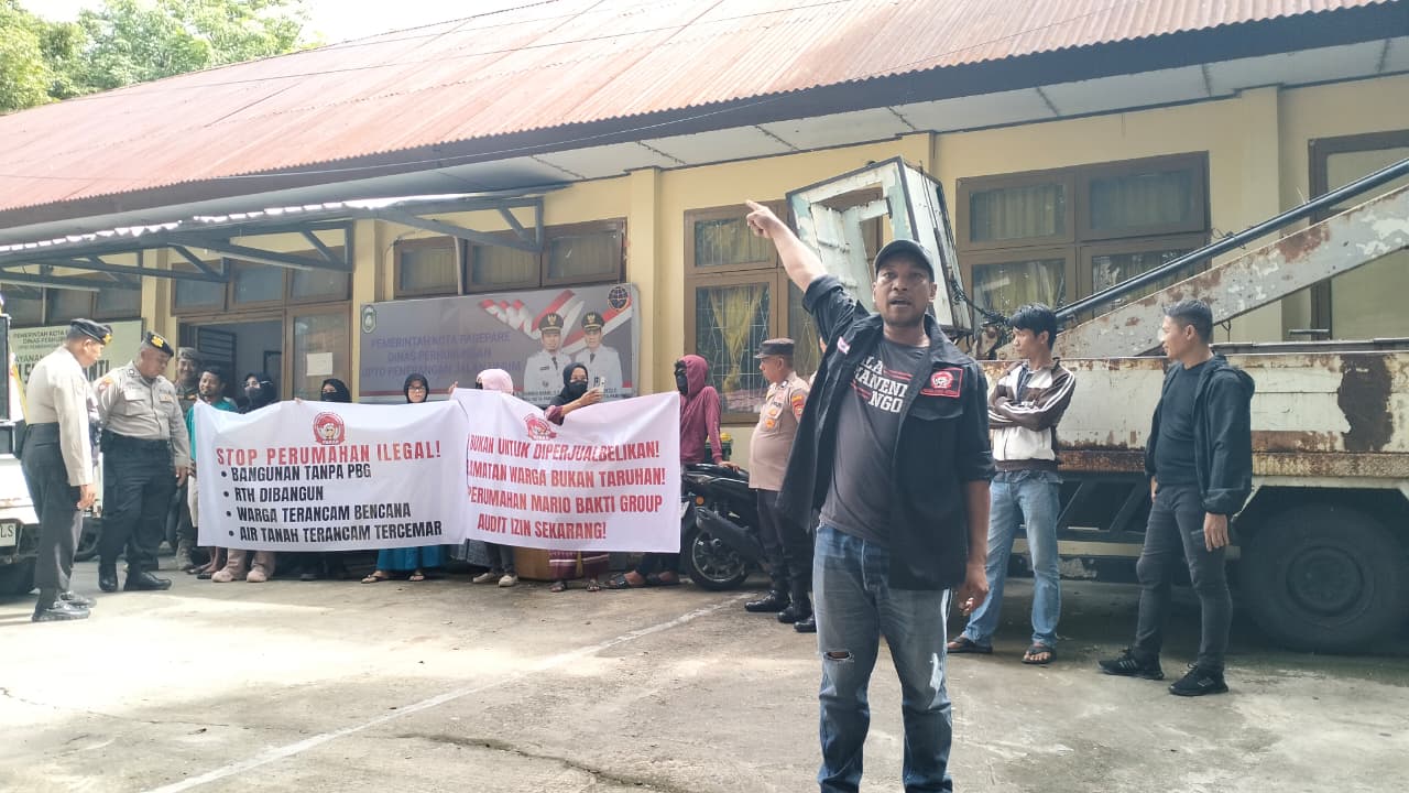Dalam orasinya, perwakilan LSM Pakar, Tenry Wara, mendesak Pemerintah Kota Parepare bertindak tegas terhadap pengembang, Mario Bakti Group. Ia menyebut terdapat enam unit bangunan tambahan di luar site plan dari total 43 unit yang direncanakan, terdiri atas empat rumah dan dua ruko yang diduga tidak memiliki Persetujuan Bangunan Gedung (PBG).