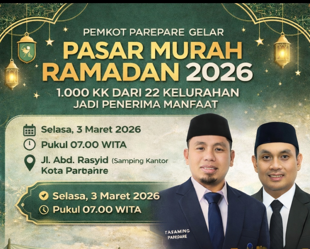 PAREPARE, DELIK.ID – Pemerintah Kota Parepare melalui Dinas Perdagangan akan menggelar kegiatan Pasar Murah Ramadan Tahun Anggaran 2026. Kegiatan ini menyasar sebanyak 1.000 kepala keluarga (KK) yang tersebar di 22 kelurahan di Kota Parepare.