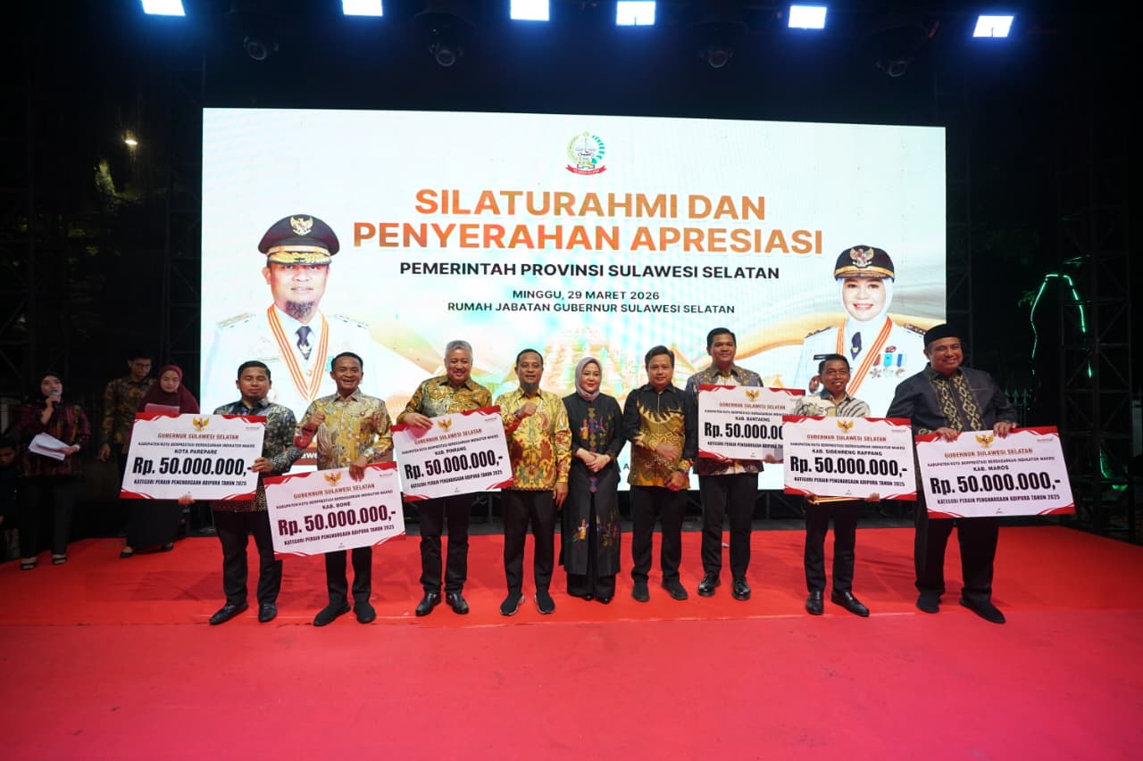 Penghargaan tersebut diserahkan langsung oleh Gubernur Sulsel, Andi Sudirman Sulaiman kepada Wali Kota Parepare, Tasming Hamid, didampingi Wakil Wali Kota Hermanto, di Rumah Jabatan Gubernur Sulsel, Minggu (29/3/2026).