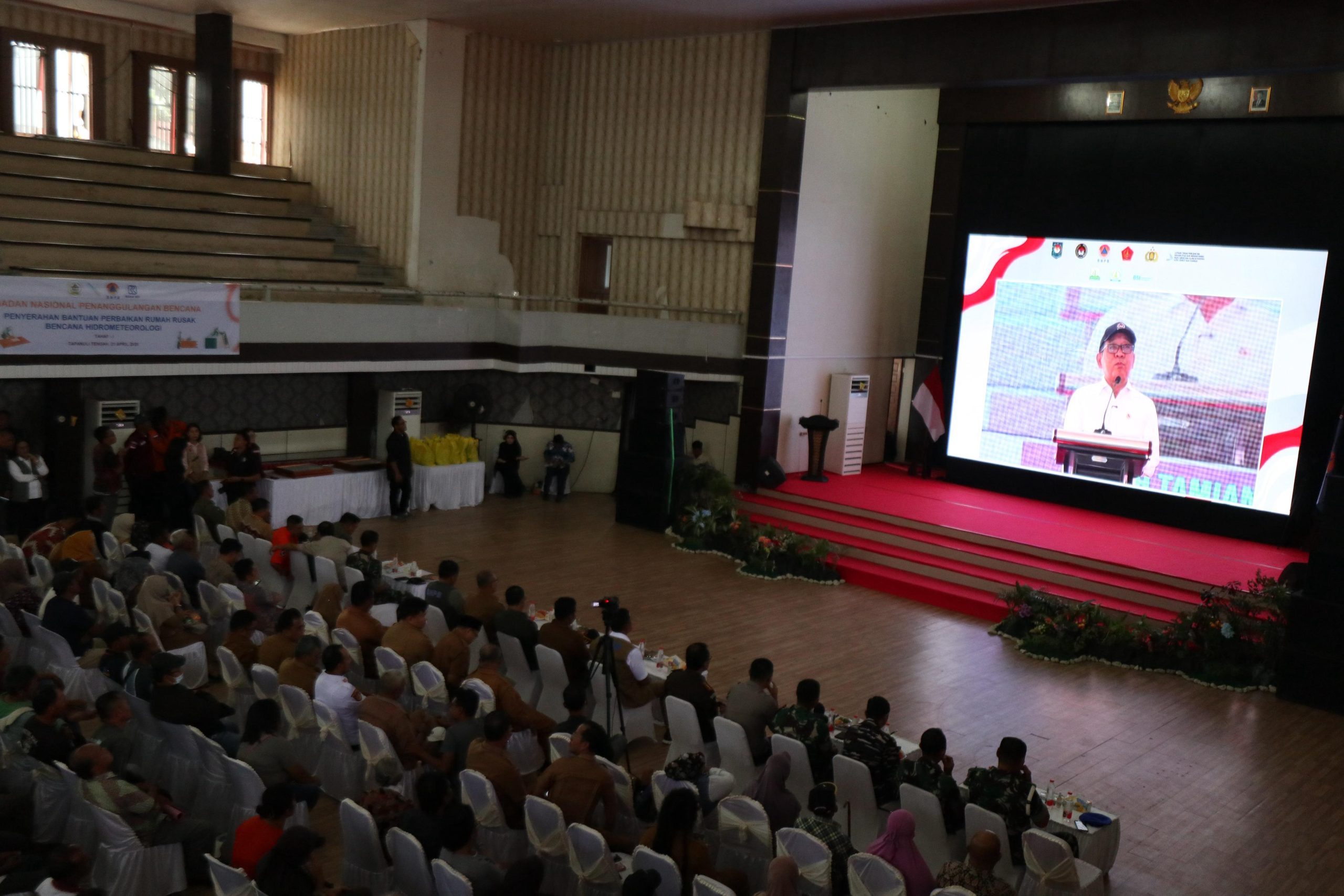 Penyerahan bantuan dilakukan secara simbolis oleh Kepala BNPB, Suharyanto, di Gedung GOR Pandan, Sibolga, Kabupaten Tapanuli Tengah, Selasa (21/4).