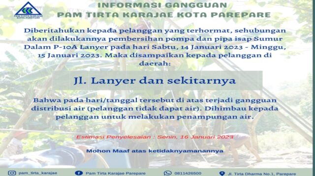 PAREPARE, DELIK.ID – Perusahaan Umum Daerah Air Minum (PAM) Tirta Karajae Kota Parepare kembali mengumumkan […]
