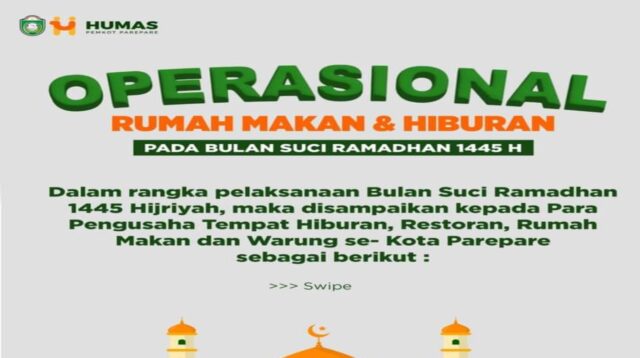PAREPARE, DELIK.ID – Pemerintah Kota Parepare mengeluarkan kebijakan aturan yang membatasi operasional tempat hiburan, restoran, […]